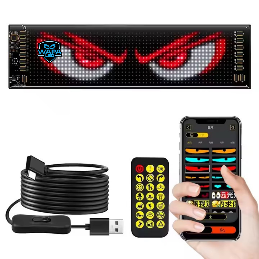 Lleva tu auto o moto al siguiente nivel con esta pantalla LED Matrix flexible de 60 x 12 cm. Personaliza mensajes, animaciones y colores desde tu celular o con el control remoto incluido. Fácil de instalar gracias a su cable de 4.5 metros y conexión USB.